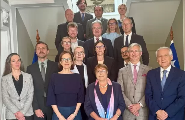Embajadores de la Unión Europea en Chile se reunieron con la expresidenta Michelle Bachelet para conocer su visión en el marco de su candidatura a la Secretaría General de la ONU. En el encuentro participaron representantes de varios países europeos junto a la embajadora Claudia Gintersdorfer, abordando también la importancia del multilateralismo en el actual escenario global.