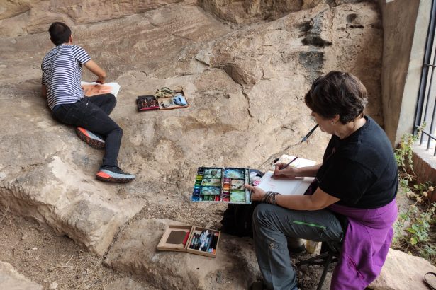OG1 se ubica a pocos metros de talleres líticos y chenques, estructuras funerarias indígenas. La proximidad no parece casual: el arte rupestre integraba el mismo paisaje ritual que la muerte y la manufactura de herramientas.
